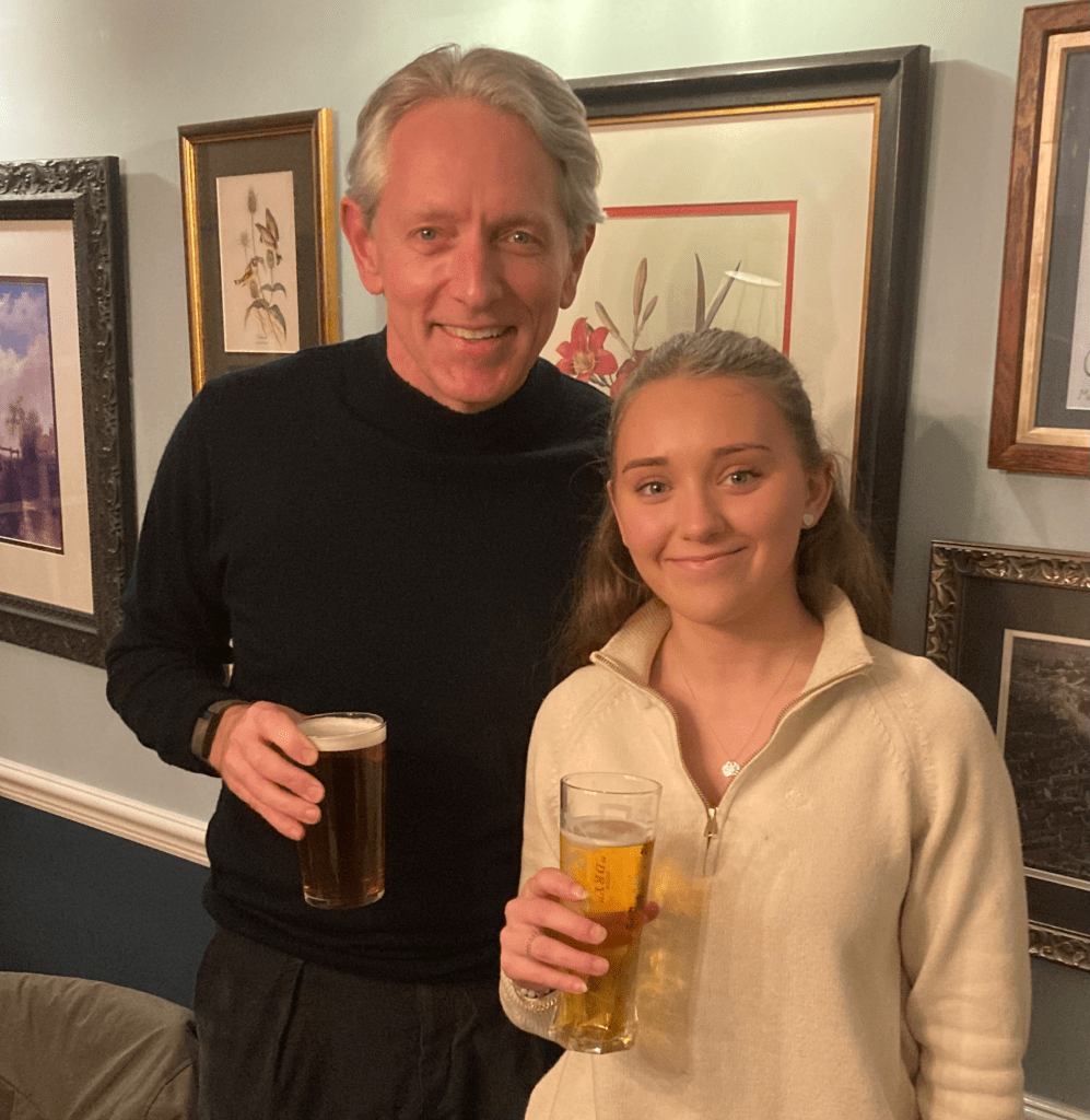 Proud Uncle enjoys birthday beer with niece. Nothing unusual here.