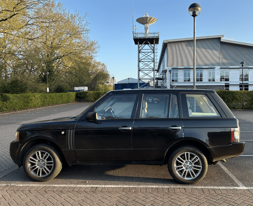 The car – A 2009 Range Rover Diesel TDV8. Pictured here safe and sound back in the office car park, Guildford. (Looks black in this light.. but it’s Bournville Brown.)