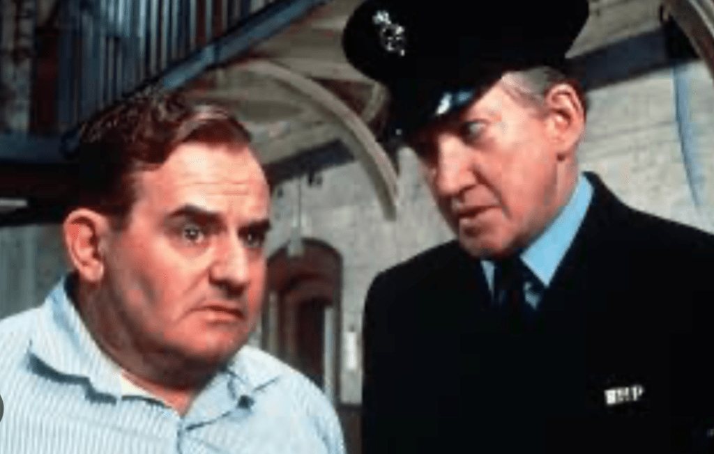 This morning’s subject was Porridge. The 1970s TV show. In particular, the prison officer character played by Brian Wilde. Foggy from Last of the Summer Wine, if that helps.