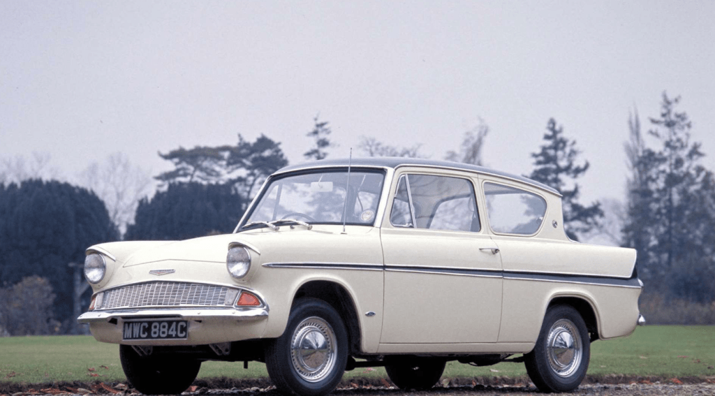 Whilst cycling on quiet Shropshire lanes yesterday I was passed by a young woman driving a mint 1960s white Ford Anglia. Bit like the one pictured.